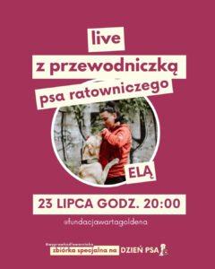 W podziękowaniu za wsparcie mamy dla Was kolejną ciekawą propozycję na spędzenie wtorkowego wieczoru. Już 23 lipca o godz. 20:00 na profilu @fundacjawartagoldena na instagramie odbędzie się live z Elą Hyrsz – przewodniczką psa ratowniczego, suczki Akiry. 👩🏻🐶