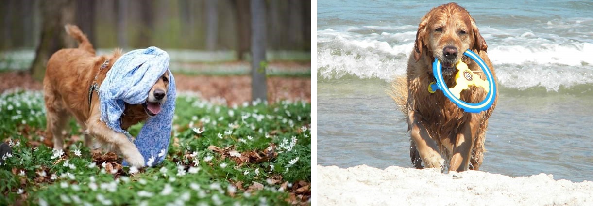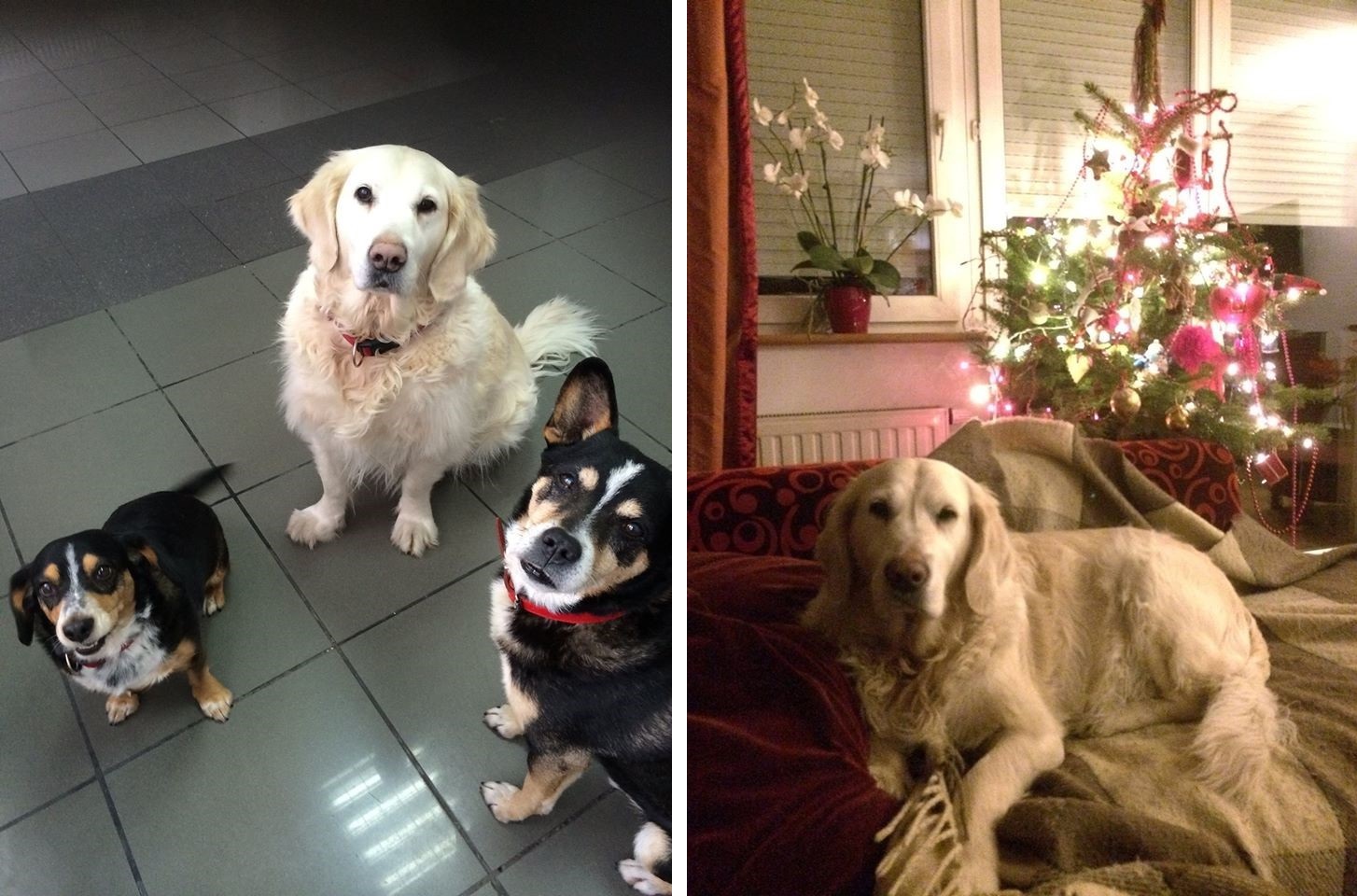Oswajanie ich ze światem nie było proste, nie chciały ufać człowiekowi. Ze schroniska dostaliśmy taki opis Gai: suka rasy Golden retriever, umaszczenie biało – biszkoptowe, wiek ok. 8 lat waga 22,1 kg, wychudzona, zapchlona, w rui, u nasady ogona zapalenie skóry, łojotok, przełysienie, kły starte do połowy długości. Zapalenie dziąseł. Pani Ania, gdy dowiedziała się o suczkach od razu zadeklarowała, ze chce się zaopiekować tą starszą, czyli właśnie Gają. Sunia bardzo szybko poczuła się wspaniale w domu Pani Ani, otworzyła się i okazała się być idealnym psem. W sierpniu Goja będzie świętować 14 urodziny.