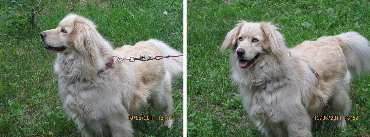 Historia kolejnego psa jest bardzo zawiła. Pies dostał imię BIAŁY (odszedł 22.03 za TM), choć wcale biały nie był. Nie był także goldenem, miał oczy husky, był dość niski. Ten pies właściwie nie był pod naszą opieką, ale bardzo chcieliśmy mu pomóc w znalezieniu domu. I udało nam się, Biały pojechał do ludzi, którzy go pokochali całym sercem. Niestety okazało się, że pies bardzo się roztył i opiekunowie nie byli tym faktem zaniepokojeni. Biały musiał wrócić z powrotem do swojego opiekuna i okazało się, że ma niedoczynność tarczycy. Historia tego psa spowodowała wielkie nieporozumienia i waśnie. To ta najgorsza strona pracy w fundacji, nie zawsze jesteśmy jednomyślni, za to bardzo szybko krytykujemy innych. Wyciągnęliśmy wnioski z tej skomplikowanej sprawy.