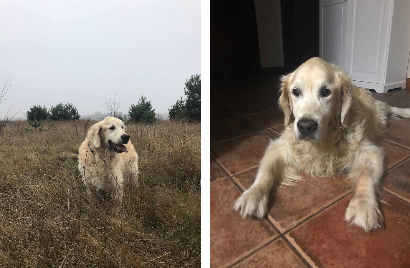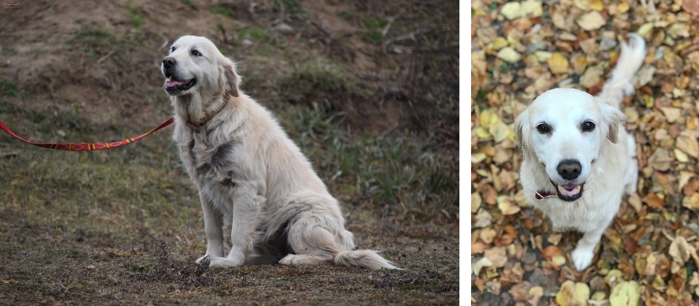Trafiła do nas jako pięciolatka, została znaleziona w bardzo ciężkim stanie, z ogromną raną na szyi – początkowo miała na imię Bella, lecz szybko stała się POLĄ. Jest wspaniałym psem, łagodna, delikatna, super goldenka. Bardzo szybko zainteresowała się nią Marzanna i otoczyła ją troskliwą opieką. Pola od początku na spacerach bardzo się słuchała, nie ciągnęła na smyczy, jest ogólnie bardzo karna i wpatrzona w człowieka. W tym roku POLA ukończy 15 lat. Opiekunka suni pisze nam, że „zdrówko POLI byłoby super, gdyby nie zwyrodnienie kręgosłupa, bardzo ją boli, nóżki tylne trochę słabe, ale jeszcze potrafi się zakręcić i śmigać jak młódka”.
