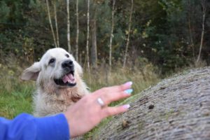 Leon dodatkowo był psią fajtłapą – co chwilę robił sobie jakąś krzywdę, a to naciągnął więzadło w nodze, a to wbił sobie gałąź w zatoki nosowe, pechowo zachorował również na babeszjozę, pomimo zastosowanego zabezpieczenia przeciwko kleszczom. Te liczne wizyty u weterynarza nie należały do łatwych, chłopak mocno pokazywał, że nie podobało mu się to miejsce, nierzadko straszył wszystkich dookoła. Ale i te reakcje stopniowo udało się załagodzić, a część nawet wyeliminować. Swoim konsekwentnym działaniem, metodą pozytywnych wzmocnień, Kasia nauczyła Leona, że jest czas na wyciszenie i relaks, a także czas na treningi, zabawy i inne aktywności. To był ważny etap, który pozwolił utrzymać dobry nastrój Leona i emocje na wodzy. Ogromną radość przynosiły Leonowi wyjazdy do rodziców Kasi, gdzie spędzał czas z dwoma innymi goldenami, gdzie z pewnością poczuł się częścią stada. Dobre i stonowane emocje stopniowo zastępowały te wcześniejsze – złe. To był prawdziwy sukces Kasi!