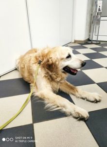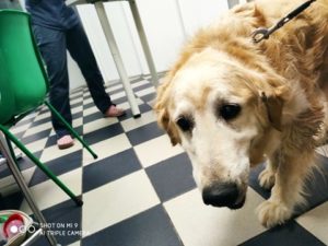 Jak to bywa w tym wieku u goldenów, parametry tarczycy są przy dolnej granicy, więc trzeba będzie je, co jakiś czas kontrolować. Sanczosław ma zdarte zęby, a do tego modzele na łokciach od leżenia na twardej powierzchni – poza tym, to zdrowy chłop! ??