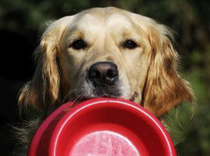 - Podawanie konkretnych przedmiotów – czy wiecie, że naturalne predyspozycje goldenów do aportu i noszenia mogą być świetną zabawą dla psa i pomocą dla Was w codziennych obowiązkach? Nauczcie psa komendy „podaj” i sprzątajcie razem porozrzucane zabawki lub rozwieszajcie pranie. Podawania uczymy również przez kształtowanie, podobnie jak w przypadku popychania piłki. Czyli stawiamy konkretny przedmiot przed psem i wzmacniamy kolejne etapy zbliżające nas do zamierzonego zachowania, czyli zainteresowanie przedmiotem, zbliżenie do niego pyska, próba chwycenia w zęby, podniesienie z podłogi, wydłużony czas trzymania w pysku, poruszanie się z przedmiotem w pysku w Waszym kierunku. Jeżeli wzmacniać będziemy smaczkami to pies automatycznie będzie wypuszczał przedmiot z pyska, co również jest naszym celem. Z kolejnymi powtórzeniami, gdy wzmacniane będą coraz dokładniejsze podnoszenia, możecie wyciągnąć jedną rękę w kierunku psa, aby złapać przedmiot, a z drugiej wydać smaczka. Jak już pies załapie, o co nam chodzi, podkładamy komendę i zmieniamy przedmioty, aby zgeneralizować nowe wyuczone zachowanie. W ten sposób nauczycie psiaka podawać różne przedmioty, które mu wskażecie i w przyszłości psiak może pomagać zbierać zabawki z Waszymi dziećmi czy podawać pranie z kosza do rozwieszenia 😀 Satysfakcja gwarantowana! Wy macie mniej obowiązków, a psiak jest zadowolony, że uczestniczy i pomaga w zadaniach życia codziennego.