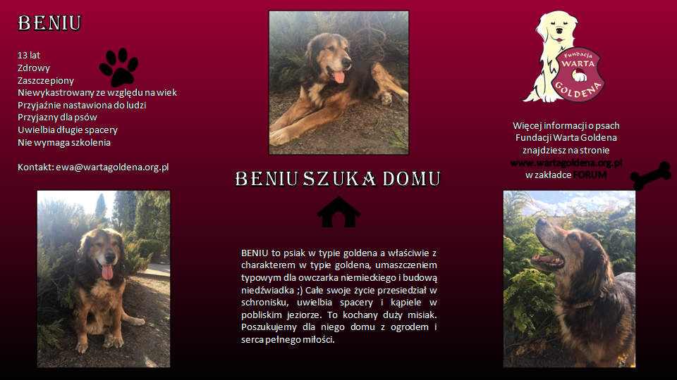 Kochani nasz wspaniały honorowy golden BENIU nadal szuka swojego człowieka