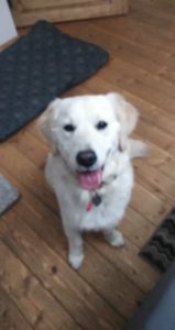 Blanka młoda suczka określana jako wulkan energii.Wszystko ją bardzo interesuje, czasem przeraża. Dobrze, że na wsi nie ma takiego ruchu nie ulicy, bo mógł by być problem.Blanka do tej pory mieszkała w budzie.Szybko sie uczy ,powoli przestaję ciągnąć na smyczy.