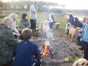 W następnym dniu pogada nam trochę się popsuła, bo zaczął kropić deszcz ale nie przeszkadzało nam to za bardzo, bo mieliśmy zaplanowane szkolenie – głównie z podstaw dotyczących sygnałów uspokajających wysyłanych przez psy. Potem oczywiście dalsze spacerki nad morzem i podziwianie widoków. A wieczorem kolejne ognisko i wieczorne Polaków rozmowy. Spędziliśmy cudowny czas również oglądając mecz otwarcia Mistrzostw Europy w Piłce Nożnej i mocno kibicowaliśmy naszej reprezentacji . Przy kominku zorganizowaliśmy licytację na rzecz naszych podopiecznych, którą prowadziła Kasia i naprawdę jesteśmy dumni z wyników i środków przekazanych na potrzeby naszych psiaków. BARDZO DZIĘKUJEMY darczyńcom i licytującym. Mieliśmy też ciekawe zajęcia z psami, które prowadziła Kamila. Bardzo nam się podobały i chcieliśmy jak najwięcej 🙂 Było naprawdę bardzo fajnie, ciekawie, owocnie i w ogóle SUPER !!!! No i znów musimy uzbroić się w cierpliwość w oczekiwaniu na kolejny zjazd…