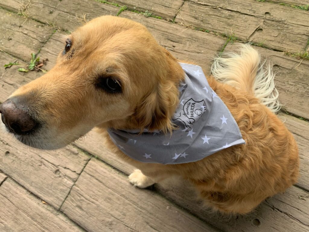 Apaszka – duma Warciaka. Kultowa chusta w kolorze szarym z białym konturem logo WG.