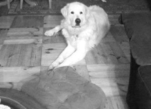 Dunaj, chociaż bliżej mu było do owczarka podhalańskiego niż do goldena, tak mocno nas poruszył, że musieliśmy mu pomóc. Trafił do Fundacji w styczniu ubiegłego roku w wieku około 10 lat. Został odebrany z łańcucha, wychudzony, zapchlony, zarobaczony, z guzami na dwóch łapach, nieleczony, przygłuchy – wrak psa