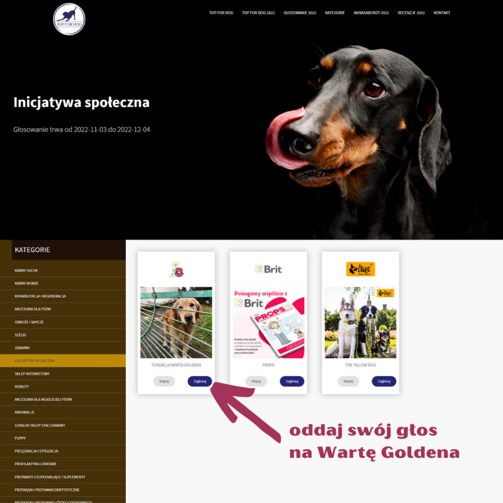FUNDACJA WARTA GOLDENA NOMINOWANA W PLEBISCYCIE #TOPFORDOG2022 W KATEGORII „INICJATYWA SPOŁECZNA”! PROSIMY O GŁOSY!
