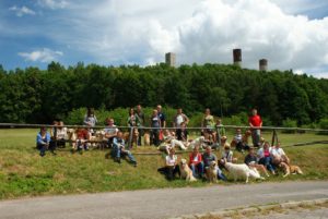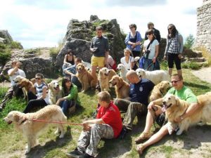 W piękny czerwcowy, długi weekend spotkaliśmy się w miejscowości Bocheniec na II Zjeździe Warty Goldena. Mieliśmy do dyspozycji bardzo atrakcyjny dla psiaków ośrodek Ptaszyniec. Niezwykle miła właścicielka ośrodka umożliwiła nam pobyt z całą ekipą psiaków, które mogły korzystać z kąpieli na terenie miejscowego zbiornika wodnego oraz całego terenu ośrodka. W zjeździe uczestniczyło kilkadziesiąt osób ze swoimi pupilami. No ale po kolei. Zjazd rozpoczynał się w czwartek i już od rana witaliśmy wszystkich zjazdowiczów. Po zakwaterowaniu w domkach powitaliśmy wszystkich ogniskiem. Było bardzo miło, pieczenie kiełbasek pomogło w bliższym poznaniu się wszystkich uczestników. Uzgodniliśmy wstępny program na wszystkie dni zjazdu. Ognisko trwało do późnych godzin nocnych. A następny dzień powitał nas promieniami słońca. Zebraliśmy całą grupę, zapakowaliśmy w samochody i pojechaliśmy zwiedzać ruiny zamku w Chęcinach. Czasami było ciężko, czasami strasznie ale w końcu wszyscy zdobyli zamek w Chęcinach