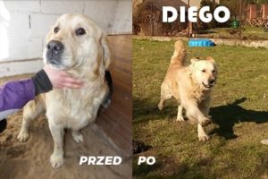 Przyjęliśmy do Fundacji również przystojnego jegomościa, któremu nadaliśmy imię Diego. Dieguś trafił docelowo do DT w Łuczycach do naszej cudownej Agnieszki i jej wesołej czworonożnej bandy Retrieverów. W pierwszych dniach Diego był zdecydowanie wycofany, obawiał się człowieka i ukrywał się przed nim w różnych zakamarkach ogrodu. Na próbę kontaktu reagował lękiem , podkulał ogon, głowę. Na szczęście Perro i Daizy – Golden i Labradorka Agnieszki mieli na niego zbawienny wpływ, w kilka dni nauczyli go, że człowiek to źródło samego dobra, ciepła, przytulasków i miłości. Zachowanie Diego zmieniło się diametralnie! Obecnie jest to największa przylepa, jak tylko wyczuje, że człowiek jest w pobliżu koniecznie musi upomnieć się o głaskanie. Potrafi wejść nawet na kolana, gdybyś czasem chciał mu odmówić czułości