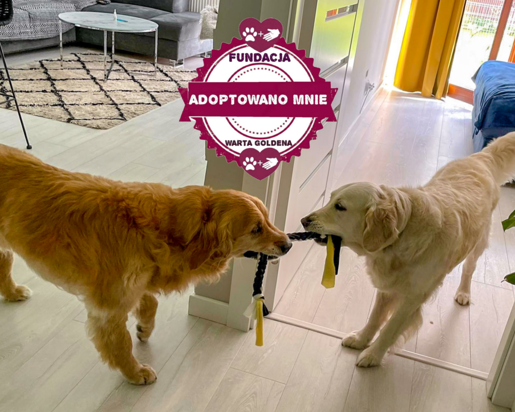 Doskonale zdajemy sobie sprawę, że opieka nad schorowanym psim staruszkiem i młodą, energiczną rezydentką to duża odpowiedzialność, ale trudno wyobrazić sobie lepszy dom i opiekunów. Dwa psy w różnym wieku i o odmiennych potrzebach to też nie lada wyzwanie, ale jak widać na załączonym obrazku – własnoręcznie wykonany przez Pańcia szarpak zdecydowanie bardziej łączy, niż dzieli. ???