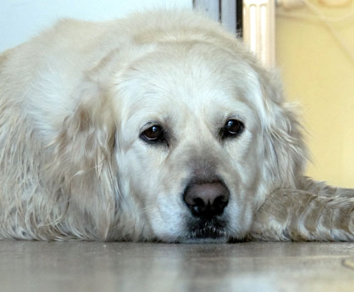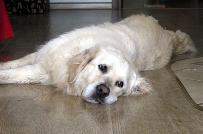 LENA trafiła pod opiekę Warty 24 kwietnia 2012 roku. Została oddana ze względu na pogarszającą się alergię dziecka, które dłużej nie mogło przebywać z psem pod jednym dachem. Lena jest piękną, jasną goldenką. Bardzo dobrze dogaduje się z innymi psami, jest niezmiernie łagodna i delikatna w stosunku do dzieci, zamieszkała więc w domu z Tigerem i jego opiekunami w Szczercowie. Na początku pobytu była trochę wystraszona i nieufna, ale w tej chwili wszystko jest już w porządku. Lena zostanie poddana sterylizacji podczas zabiegu usunięcia guza, który jest obecnie obserwowany przez prowadzącego weterynarza.