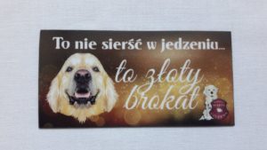 Magnes na lodówkę z napisem:   „To nie sierść w jedzeniu… to złoty brokat” .