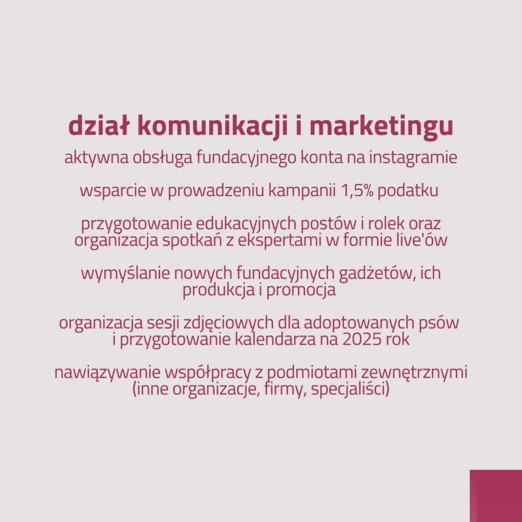 🐾 KOMUNIKACJI I MARKETINGU, gdzie staramy się, aby działania Warty Goldena były widzialne w internecie, tworzymy dedykowane kampanie promocyjne i dbamy o pozyskiwanie funduszy na bieżącą działalność.