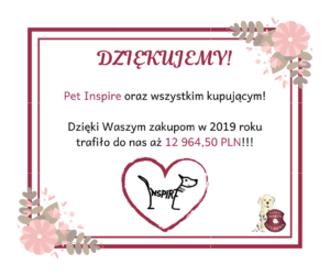 Sprawdziliśmy nasze konto i jesteśmy ogromnie wzruszeni!!! W całym roku 2019 Pet Inspire przekazał naszym podopiecznym aż 12 964,50 zł ?