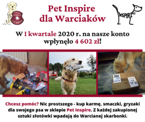 W I kwartale 2020 r. otrzymaliśmy od Pet Inspire 4 602 zł!
