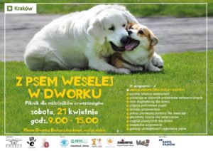 Jak co roku w kwietniu, z fundacjami: Z psem weselej oraz Fundacja Człowiek Dla Zwierząt, tak i tym razem, Dworek Białoprądnicki otworzy swe podwoje dla miłośników zwierząt i ich czworonożnych przyjaciół.