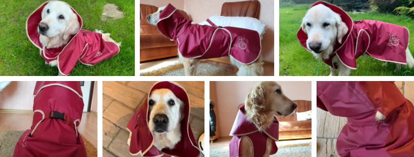 Płaszcz dla psa w fundacyjnych barwach. Świetna ochrona przed deszczem, otwór na szyi przeznaczony na zapięcie smyczy do obroży, pasek na brzuchu jest regulowany. Idealny do nałożenia na naszych czworonogów na jesiennych, błotnistych spacer lub wiosenne przechadzki w porannej rosie. Wspaniałe rozwiązanie dla tych psów, które nie przyjaźnią się z suszarką.