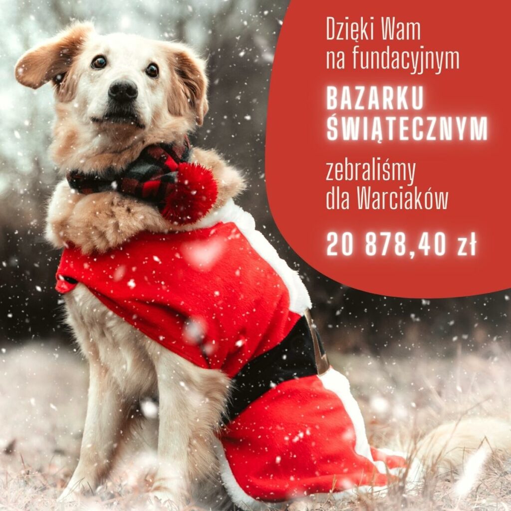 Dzięki Waszemu zaangażowaniu, przekazanym fantom od firm i osób prywatnych, a także emocjonującym licytacjom udało się zebrać ponad 2️⃣0️⃣ 0️⃣0️⃣0️⃣ złotych! Do tego blisko 2️⃣5️⃣0️⃣0️⃣ zł dodatkowo na prezenty świąteczne i utrzymanie podopiecznych w ramach akcji #świątecznapakadlawarciaka2022! ???