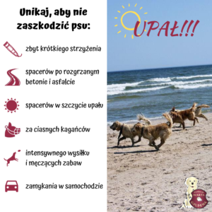 zbyt krótkie strzyżenie psa (sierść stanowi naturalną warstwę izolacyjną i chroni skórę przed poparzeniami słonecznymi oraz przegrzaniem)
