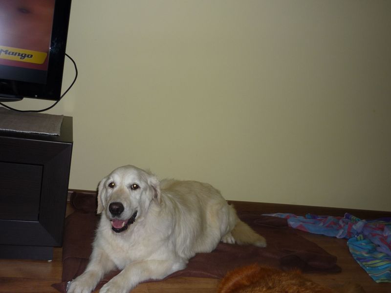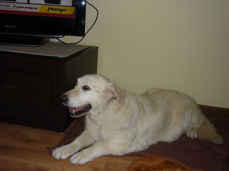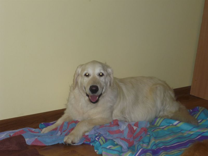 RAFA jest piękną, kremową Goldenką, która zaopiekowaliśmy się z powodu choroby właścicielki 20 sierpnia 2011 roku. Rafcia jest bardzo delikatną sunią o trochej płochliwej naturze i lękliwym charakterze. Jest niepewna, ale bardzo garnie się do ludzi i chętnie chodzi na spacery. Uwielbia podgryzać przedmioty w nowym domu tymczasowym, co może być związane ze stresem dotyczącym zmiany miejsca zamieszkania. Rafa, jak na swój wiek, jest zdrowym psem, choć przed nami jeszcze diagnoza jej stanu stawów biodrowych. Aktualnie Rafcia przebywa w domu tymczasowym w Gdyni, gdzie została wykąpana i była na wizycie u psiego fryzjera.