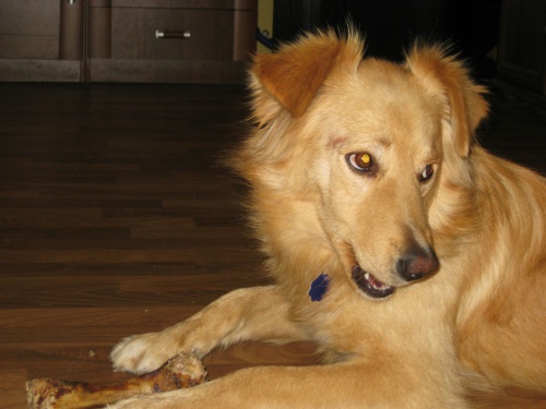 Chłopak ma około roku i zamieszkał w domu tymczasowego w Braniewie. Skoczek nie jest Goldenem, ale chcieliśmy bardzo mu pomóc, bo to młody piesek, zależało nam, żeby nie spędził całego swojego życia w schronisku. Skoczek dostał takie imię, gdyś jest niezmiernie skocznym psem, bez problemu przeskakuje wszelkie ogrodzenia. W związku z powyższym szukamy dla niego domu w mieszkaniu, żeby nie był w stanie uciec. Skoczek został już zaszczepiony. Jest bardzo łagodnym i miłym psem, typowym przytulakiem. Skoczek został Rico w swoim domu tymczasowym.