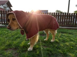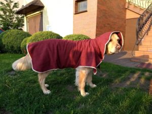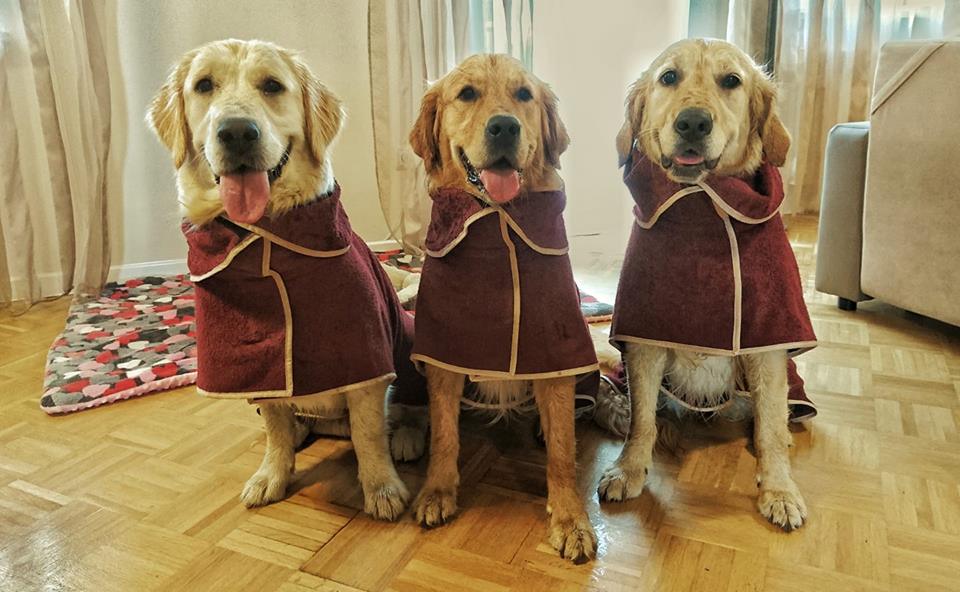 Szlafrok dla psa w fundacyjnych barwach. Doskonale wchłania wodę. Idealny do nałożenia na naszych czworonogów po jesiennych, błotnistych spacerach lub letnich kąpielach w morzu. Wspaniałe rozwiązanie dla tych psów, które nie przyjaźnią się z suszarką.