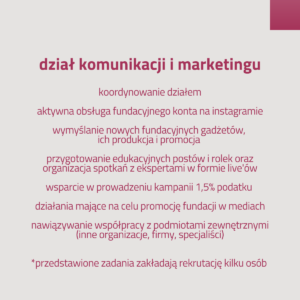 🐾 KOMUNIKACJI I MARKETINGU, gdzie staramy się, aby działania Warty Goldena były widzialne w internecie, tworzymy dedykowane kampanie promocyjne i dbamy o pozyskiwanie funduszy na bieżącą działalność.