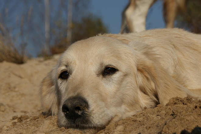 TOBY trafił pod opiekę naszej fundacji do DT w Gliwicach 16 października 2010 roku. Jest pięknym 6-miesięczny szczeniakiem, który jeszcze załatwia się w domu. Mały jest rewelacyjny, bardzo żywy i nastawiony na człowieka. Swobodnie chodzi po całym mieszkaniu i zwiedza, a najbardziej lubi łóżka. Toby został zakroplony na pchły i kleszcze (tych pierwszych miał całe mnóstwo) oraz dostał dobrą karmę, gdyż był niezmiernie chudy. Toby na pierwszy rzut oka jest bardzo stabilnym psiakiem i wyrośnie na wzorowego Goldena.