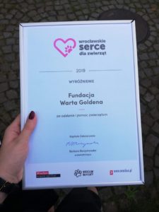 Dziękujemy za dzisiejsze wyróżnienie w 4. Edycji Wrocławskiego Serca dla Zwierząt