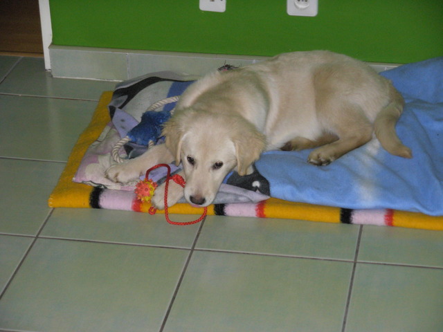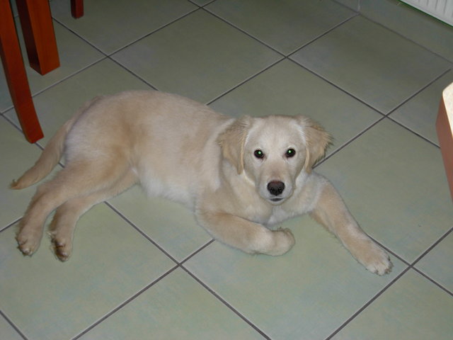 ZOE jest fantastyczną 4-miesięczną dziewczynką, która szukała nowego domu, bo w jej starym domku nie było już dla niej miejsca, ani serca. Zoe bardzo lubi spacery i wygłupy na śniegu. Powolutku dochodzi do siebie tzn. otwiera się na nowy fantastyczny świat. Sunia reaguje na swoje imię, ma również opanowane pierwsze komendy jak siad, daj cześć i leżeć. W tej chwili pracujemy nad przyjściem do nogi na zawołanie. Jest ok bo wie, że czeka ją nagroda – smaczki. Zoe na początku bała się wszystkiego, wchodzenia na schody, wyjścia na dwór, jazdy samochodem, lecz z czasem wszelkie jej lęki zostały skutecznie opanowane. Teraz Zoe jest już dużą dziewczynką i jak na Goldena przystało uwielbia wodę, pływanie i aportowanie.